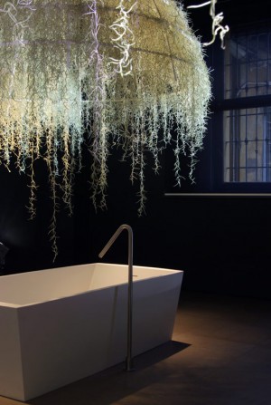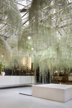 Rainforest This installation is made of tropical plants, the epiphyte one - « Tillandsias usneoïdes » -They are hanging on Corian® structures. The origin of the tillandsias unsneoïdes comes from rain forests in South America. These is non-soil plants. They are directly fixed on the branchs of trees ...