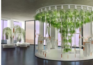 Rainforest This installation is made of tropical plants, the epiphyte one - « Tillandsias usneoïdes » -They are hanging on Corian® structures. The origin of the tillandsias unsneoïdes comes from rain forests in South America. These is non-soil plants. They are directly fixed on the branchs of trees and they ...